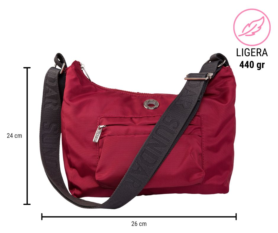 Asa larga ajustable estilo crossbody con caída al hombro de 32 cm hasta 65 cm.