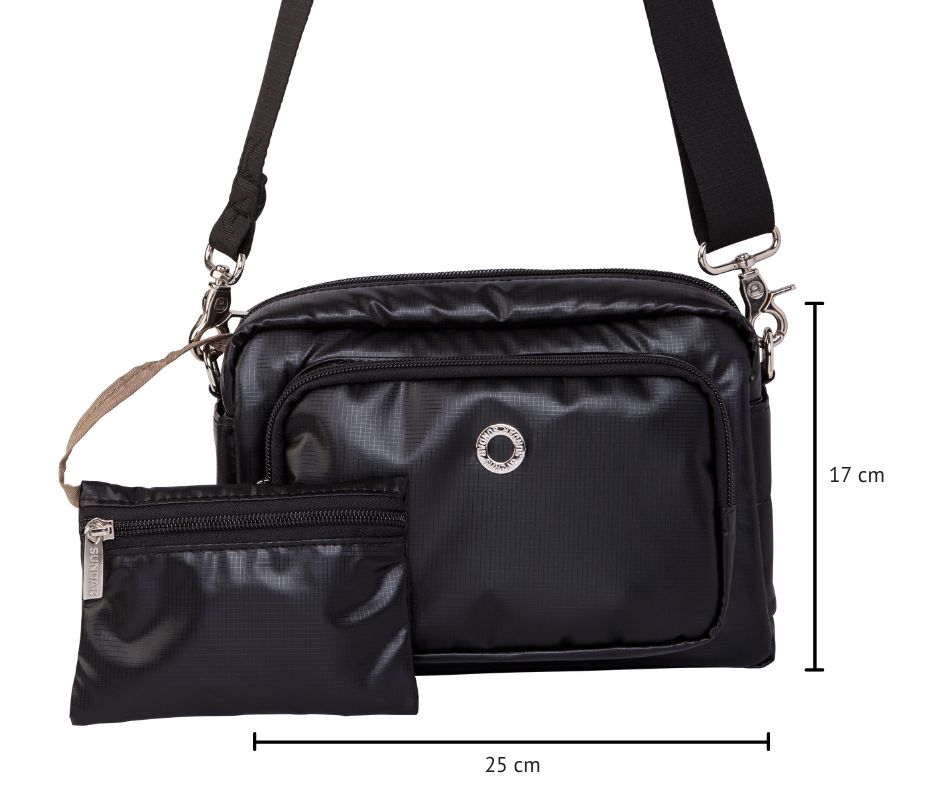 CROSSBODY LAURA SUNDAR NEGRA METÁLICA
